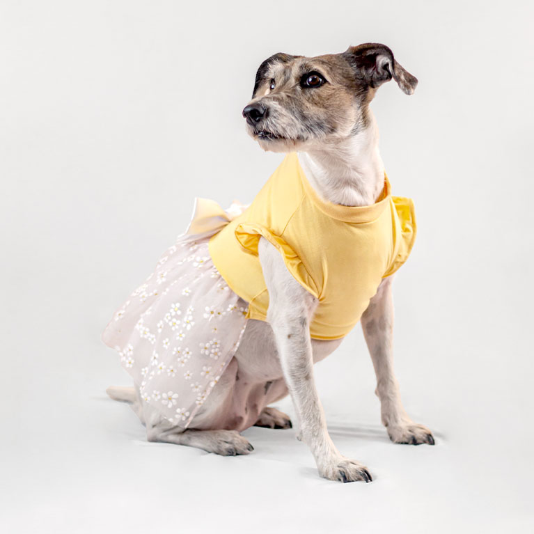 Vestido amarillo tul flores